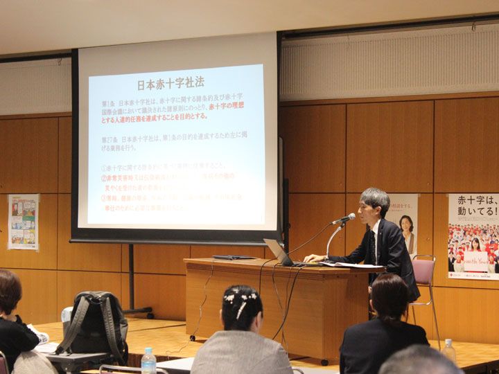 第2部では、日本赤十字社愛知県支部 事務局総務部 赤十字会員課長の石川尚平氏が登壇し、「日本赤十字社の活動紹介と寄付の活用」をテーマに講義を行いました。